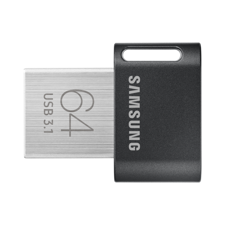 Samsung MUF-64AB. Capacité: 64 Go, Interface de l'appareil: USB Type-A, Version USB: 3.2 Gen 1 (3.1 Gen 1), Vitesse de lecture: 300 Mo/s, Vitesse d'écriture: 30 Mo/s. Format: Sans capuchon. Protection par mot de passe. Poids: 3,1 g. Couleur du produit: Gris, Argent
