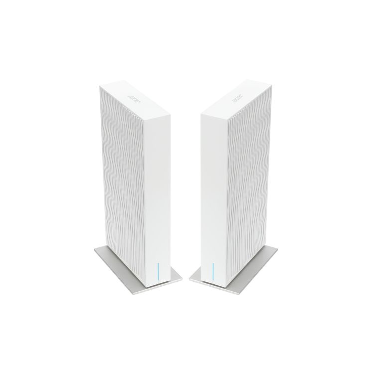 Acer Wave 7, wifi 7 Mesh Router, EU plug, dual pack. Type de connexion WAN: RJ-45. Bande Wi-Fi: Dual-band (2.4GHz + 5GHz or 2.4GHz + 6GHz), Norme Wi-Fi: Wi-Fi 7 (802.11be), Débit de transfert des données WLAN (max): 5764 Mbit/s. Type d'interface LAN Ethernet: Gigabit Ethernet. Type de produit: Routeur. Conception d'antenne: Interne