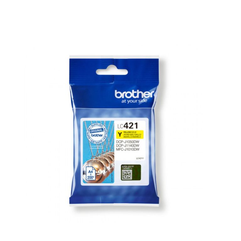 Brother LC421Y - Cartouche d'encre originale - jaune. Type d'alimentation: Paquet unique, Rendement par page d'encre de couleur: 200 pages, Couleurs d'impression: Jaune, Quantité: 1 pièce(s)
