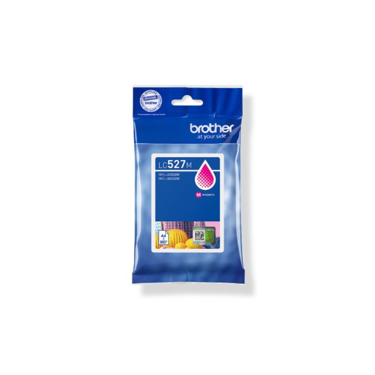 Brother Cartouche d'encre authentique LC527M - Magenta. Type d’encre de couleur: Encre à pigments, Type d'alimentation: Paquet unique, Rendement par page d'encre de couleur: 900 pages, Couleurs d'impression: Magenta, Quantité: 1 pièce(s)