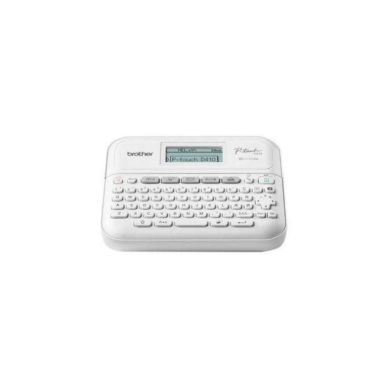 Brother PT-D410 | Etiqueteuse bureautique professionnelle. Technologie d'impression: Transfert thermique, Vitesse d'impression (mesure métrique): 20 mm/sec. Technologie de connectivité: Avec fil, Port USB. Disposition des touches du clavier: QWERTY. Type de bande magnétique: TZe. Couleur du produit: Blanc