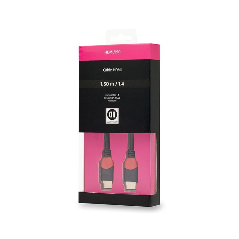 D2 Diffusion D2HDMI150. Longueur de câble: 1,5 m, Connecteur 1: HDMI Type A (Standard), Genre de connecteur 1: Mâle, Connecteur 2: HDMI Type A (Standard), Genre de connecteur 2: Mâle, Contacts du connecteur de placage: Or, Version HDMI: 1.4, Compatibilité 3D, Couleur du produit: Noir, Rose