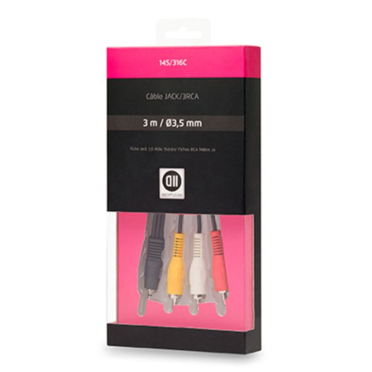 Cble Jack 3,5mm mle/3 RCA mle D2 Diffusion d'une longueur de 1,5 mètres.