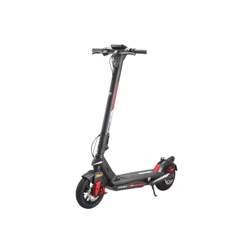 DUCATI PRO III R (comprend les clignotants). Scooter électrique en alliage de magnésium avec feux LED avant et arrière. Écran LED de 3,5 pouces avec port USB. Pneus tubeless de 10 pouces avec freins à disque avant et arrière et étriers de frein semi-hydrauliques. Autonomie de 40 km