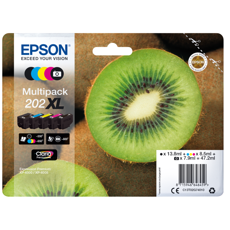 Réduisez vos coûts d’impression\nEpson propose des cartouches d’encre standard et à très grande capacité (XL) afin que vous puissiez choisir la meilleure option selon vos besoins. Les encres XL sont parfaites si vous imprimez d’importants volumes et peuvent réduire vos coûts d’impression. Peu importe le format (standard ou XL), toutes nos cartouches sont séparées : seule la couleur épuisée doit être remplacée. Cela signifie moins de gaspillage et un excellent rapport qualité/prix.\n\nDécouvrez la gamme\nL’encre Epson Claria Premium 5 couleurs est idéale pour les familles dynamiques qui souhaitent conjuguer qualité d’impression pour leurs documents et rendu brillant pour des photos exceptionnelles. Elle allie des encres pigmentaires et des encres à base de colorants, sans oublier l’avantage supplémentaire d’une encre noire photo. Le résultat ? Outre la production de textes durables, ces encres permettent de générer des photos d'une qualité exceptionnelle. Qui plus est, les photos imprimées avec cette encre peuvent durer jusqu’à 300 ans dans un album photo1, garantissant ainsi que vos plus beaux souvenirs seront protégés pendant des générations.\n\nOptimisés pour les imprimantes Epson\nLes encres et les papiers Epson ont été développés pour fonctionner parfaitement avec les imprimantes Epson, afin de produire les meilleurs résultats maintes et maintes fois. \n\nL’article d’origine\nPermet de réaliser des impressions sans difficulté et fiables avec les encres d’origine Epson. Nous réalisons de lourds investissements en Recherche et Développement, d’usines de fabrication high-tech et de tests rigoureux auxquels nos produits sont soumis, pour vous offrir une qualité exceptionnelle.