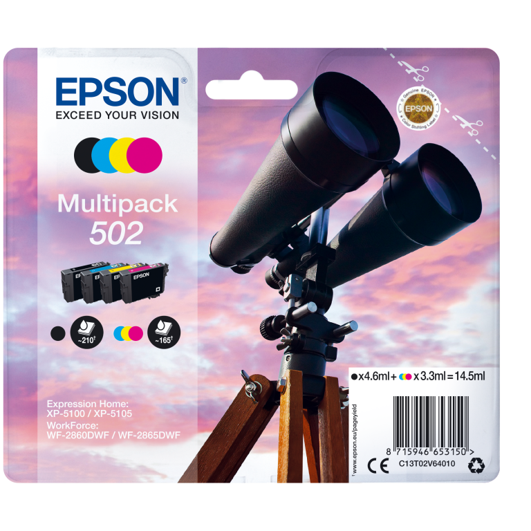 Faible coût et fiabilité \nAvec les encres individuelles quatre couleurs 502 d’Epson, vous bénéficiez d’impressions fiables, nettes et aux couleurs éclatantes tout en réalisant des économies. Grâce à la combinaison de couleurs à base de colorants et d’encres pigmentaires noires, ce kit d’encres produit des impressions colorées et riches en détails.\n\nRéduisez vos coûts d’impression avec les cartouches d’encre très haute capacité\nEpson propose le choix entre cartouches d’encre standard ou très haute capacité dans ses gammes d’encre les plus récentes. Les encres très haute capacité sont parfaites si vous imprimez d’importants volumes et peuvent réduire vos coûts d’impression.\n\nOptimisés pour les imprimantes Epson\nLes encres et les papiers Epson ont été développés pour fonctionner parfaitement avec les imprimantes Epson, afin de produire les meilleurs résultats maintes et maintes fois. \n\nL’article d’origine\nRéalisez des impressions fiables et sans difficulté avec les encres d’origine Epson. Nous réalisons de lourds investissements en Recherche et Développement et en usines de fabrication high-tech, et nous soumettons nos produits à des tests rigoureux pour vous offrir une qualité exceptionnelle.