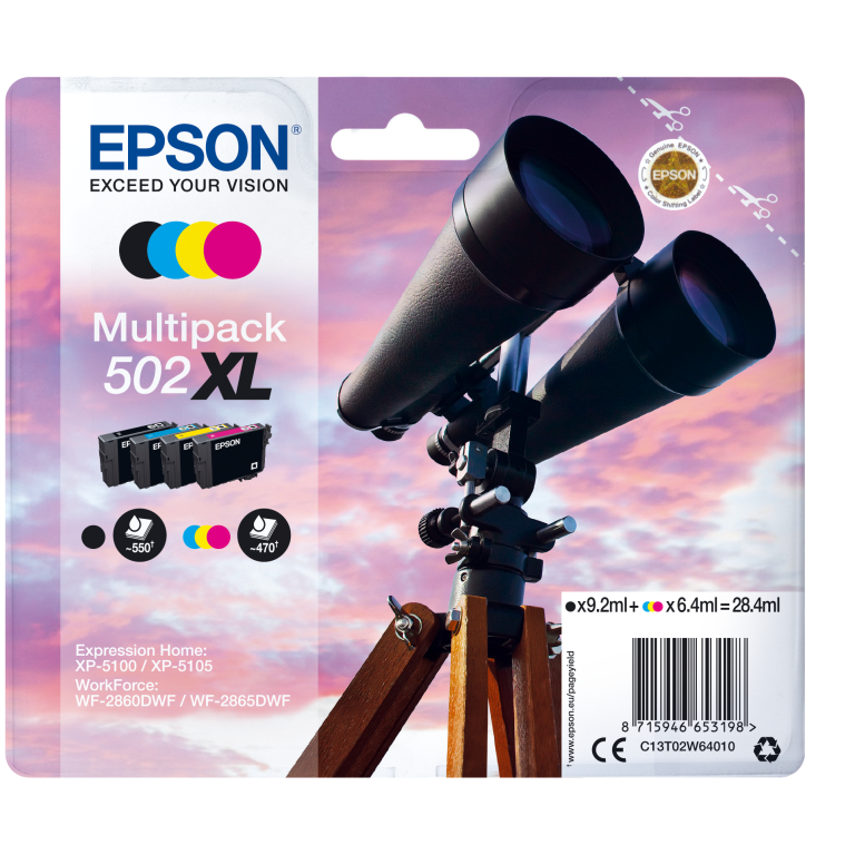 Faible coût et fiabilité \nAvec les encres individuelles quatre couleurs 502 d’Epson, vous bénéficiez d’impressions fiables, nettes et aux couleurs éclatantes tout en réalisant des économies. Grâce à la combinaison de couleurs à base de colorants et d’encres pigmentaires noires, ce kit d’encres produit des impressions colorées et riches en détails.\n\nRéduisez vos coûts d’impression avec les cartouches d’encre très haute capacité\nEpson propose le choix entre cartouches d’encre standard ou très haute capacité dans ses gammes d’encre les plus récentes. Les encres très haute capacité sont parfaites si vous imprimez d’importants volumes et peuvent réduire vos coûts d’impression.\n\nOptimisés pour les imprimantes Epson\nLes encres et les papiers Epson ont été développés pour fonctionner parfaitement avec les imprimantes Epson, afin de produire les meilleurs résultats maintes et maintes fois. \n\nL’article d’origine\nRéalisez des impressions fiables et sans difficulté avec les encres d’origine Epson. Nous réalisons de lourds investissements en Recherche et Développement et en usines de fabrication high-tech, et nous soumettons nos produits à des tests rigoureux pour vous offrir une qualité exceptionnelle.