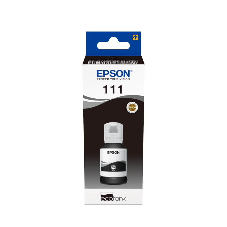 Epson 111 EcoTank Pigment black ink bottle. Type: Original, Couleurs d'impression: Noir, Compatibilité de marque: Epson. Quantité: 1 pièce(s), Largeur du colis: 59 mm, Profondeur du colis: 155 mm. Poids brut du casier principal (externe): 7,1 g, Longueur du casier principal (externe): 478 mm, Largeur du casier principal (externe): 305 mm