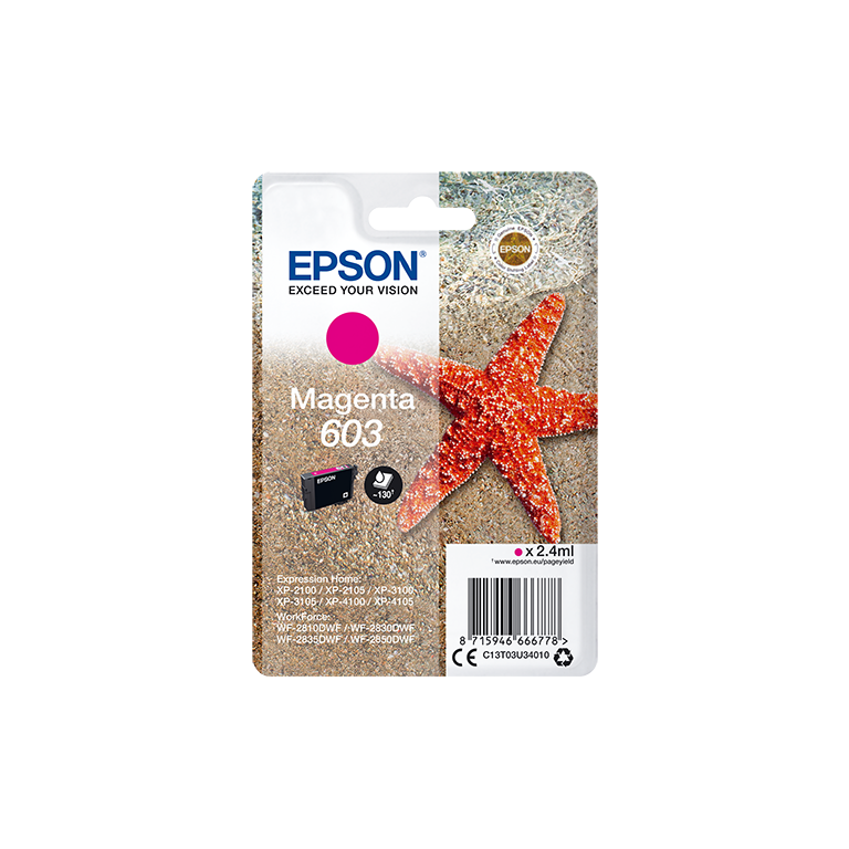 Faible coût et fiabilité \nAvec les encres individuelles quatre couleurs 603 d’Epson, vous bénéficiez d’impressions fiables, nettes et aux couleurs éclatantes tout en réalisant des économies. Grâce à la combinaison de couleurs à base de colorants et d’encres pigmentaires noires, ce kit d’encres produit des impressions colorées et riches en détails.\n\nRéduisez vos coûts d’impression avec les cartouches d’encre très haute capacité\nEpson propose le choix entre cartouches d’encre standard ou très haute capacité dans ses gammes d’encre les plus récentes. Les encres très haute capacité sont parfaites si vous imprimez d’importants volumes et peuvent réduire vos coûts d’impression.\n\nOptimisés pour les imprimantes Epson\nLes encres et les papiers Epson ont été développés pour fonctionner parfaitement avec les imprimantes Epson, afin de produire les meilleurs résultats maintes et maintes fois. \n\nL’article d’origine\nRéalisez des impressions fiables et sans difficulté avec les encres d’origine Epson. Nous réalisons de lourds investissements en Recherche et Développement et en usines de fabrication high-tech, et nous soumettons nos produits à des tests rigoureux pour vous offrir une qualité exceptionnelle.