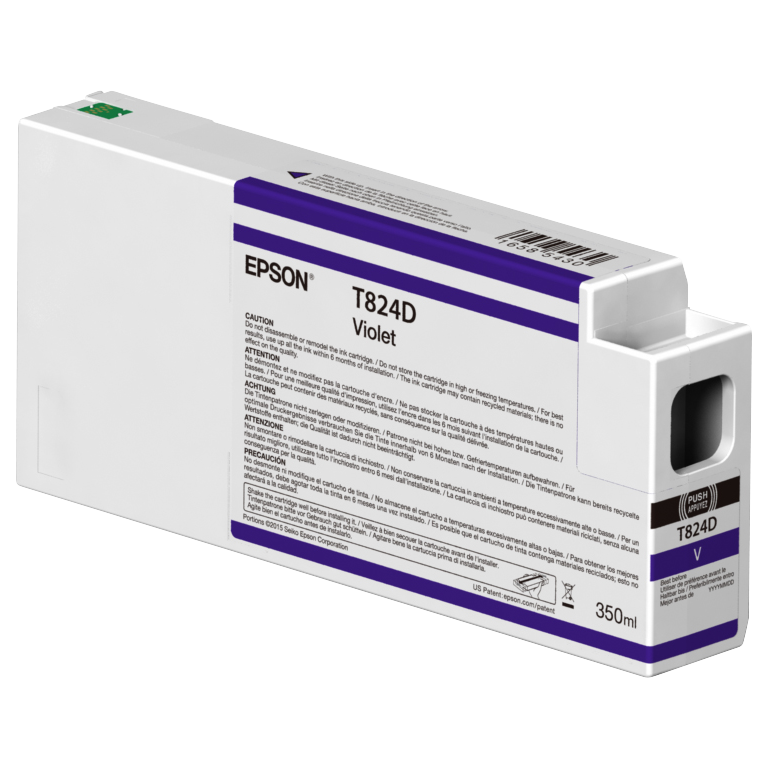 Epson Singlepack Violet T824D00 UltraChrome HDX 350ml. Type d’encre de couleur: Encre à pigments, Volume d'encre de couleur: 350 ml, Quantité: 1 pièce(s)