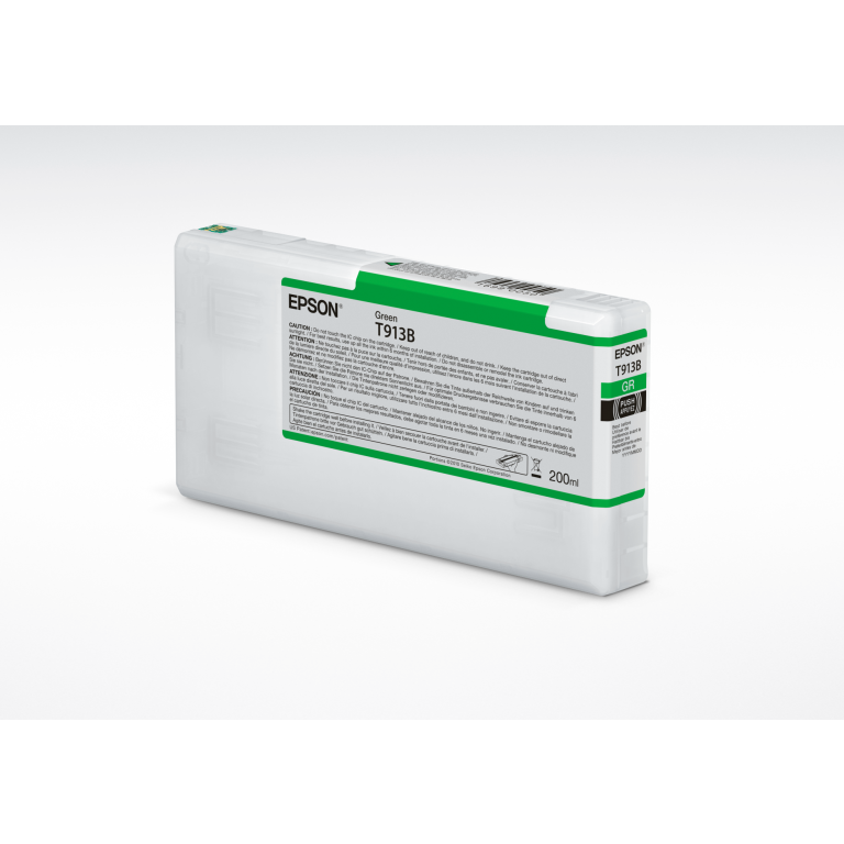 Epson T913B Green Ink Cartridge (200ml). Type d’encre de couleur: Encre à pigments, Type de cartouche d'encre: Rendement standard, Volume d'encre de couleur: 200 ml, Couleurs d'impression: Vert, Quantité: 1 pièce(s)