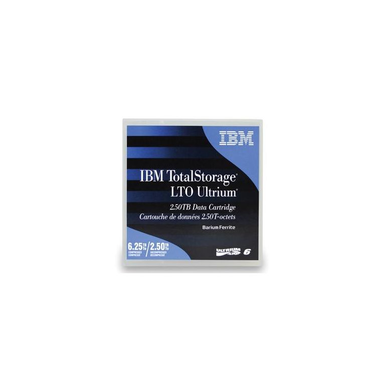 IBM LTO Ultrium 6. Type de produit: Bande de données vierge, Type de support: LTO, Capacité d'origine: 2,5 To. Longueur de la bande: 885 m, Épaisseur de la bande: 6,1 µm, Poids: 200 g. Dimensions (LxPxH): 105,4 x 102 x 21,5 mm