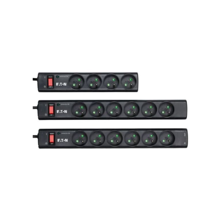 La Eaton Protection Strip 4 FR est une multiprise parafoudre équipée de 4 prises françaises (FR), conçue pour protéger efficacement vos appareils électroniques contre les surtensions. Elle supporte une puissance maximale de 2500W et un courant de 10A, idéale pour une utilisation domestique ou bureautique. Grâce à son système de protection intégré, elle sécurise vos équipements sensibles (PC, TV, périphériques, etc.) contre les pics de tension. Robuste et fiable, cette multiprise est livrée avec une garantie de 2 ans, assurant une tranquillité d’esprit à long terme.