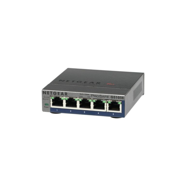 NETGEAR GS105E-200PES. Type de commutateur: Géré, Banc de commutateurs: L2/L3. Type de port Ethernet RJ-45 de commutation de base: Gigabit Ethernet (10/100/1000), Quantité de ports Ethernet RJ-45 de commutation de base: 5. Full duplex. Répertoire MAC: 8000 entrées, Capacité de commutation: 10 Gbit/s. Standards réseau: IEEE 802.1p, IEEE 802.1Q, IEEE 802.3, IEEE 802.3ab, IEEE 802.3af, IEEE 802.3i, IEEE 802.3u, IEEE...