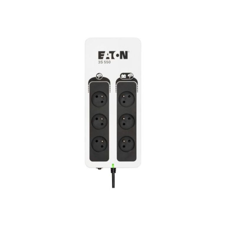Eaton 3S550F. Topologie UPS: Veille, capacité de la puissance de sortie: 0,55 kVA, Puissance de sortie: 330 W. Types de sortie AC: Type E, Nombre de prises en sortie: 6 sortie(s) CA. Technologie batterie: Sealed Lead Acid (VRLA). Couleur du produit: Noir, Blanc, Longueur de câble: 1,5 m. Certification: CE/EAC/Ukr/Cm/CB report