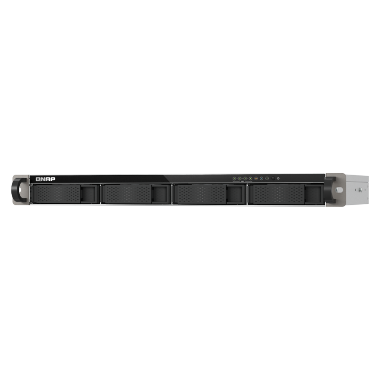 QNAP TS-433eU. Type: NAS. Type de châssis: Rack (1 U). Classe de dispositif: PME. Famille de processeur: Cortex-A, Modèle de processeur: Cortex-A55, Fréquence du processeur: 2 GHz. Mémoire interne: 4 Go. Capacité totale du stockage installé: 0 To. Système d'exploitation installé: QNAP Turbo System