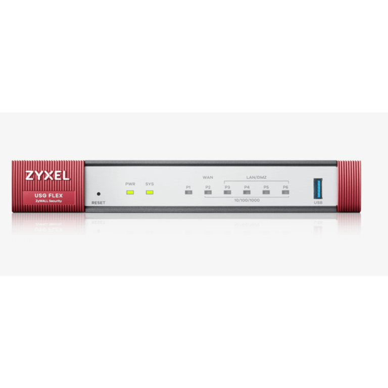 Zyxel USG Flex 100. Débit du pare-feu: 0,9 Gbit/s, Débit VPN: 0,27 Gbit/s. Dissipation thermique: 42,65 BTU/h, Temps moyen entre pannes: 989810 h. Algorithme de sécurité soutenu: IPSec, SSL/TLS, Support de VPN: IKEv2, IPSec, SSL, L2TP/IPSec. Port de console: RJ-45, Port WAN: Ethernet (RJ-45). Courant d'entrée: 2 A, Consommation (max): 12,5 W