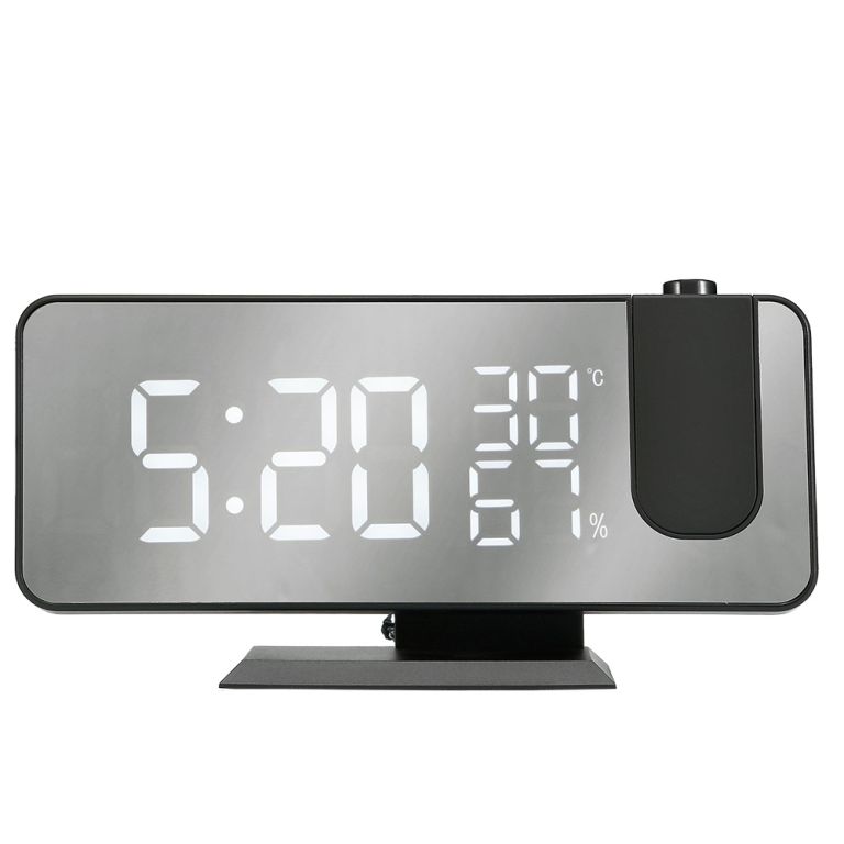 Radio réveil grand affichage avec projecteur,ecran effect miroir port USB pour la charge prise secteur inclus, noir