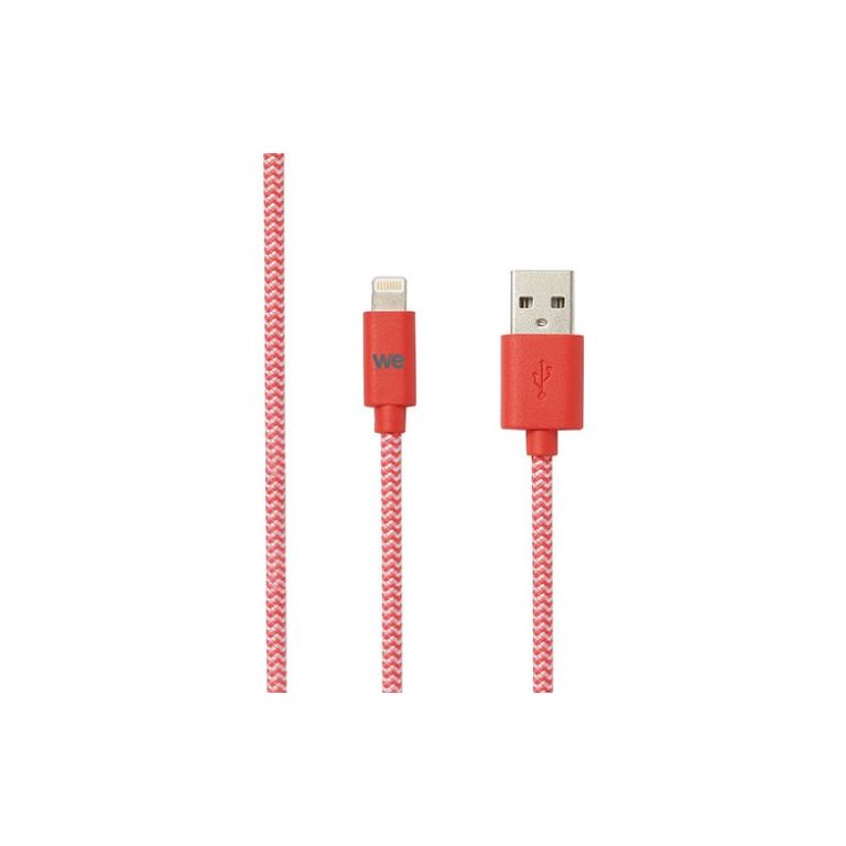 WE WEUSBLIGHTNY100RG. Couleur du produit: Rouge, Blanc, Connecteur 1: USB A, Connecteur 2: Lightning